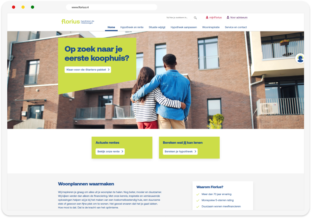 Florius (onderdeel van ABN Amro) is een Nederlandse financiële dienstverlener gespecialiseerd in hypotheken en leningen en ondersteunt mensen bij het kopen of behouden van een eigen huis. Florius streeft ernaar om klanten te helpen bij het realiseren van hun woondromen door middel van passende financiële oplossingen en advies.